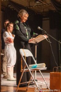 Nell’attribuire dunque il Premio “Altre Maternità” spin off del Premio Montale Fuori di Casa a 1223 Ultima fermata mattatoio (“La verità oltre un prodotto chiamato carne”) come recita il sottotitolo) lo spettacolo teatrale di e con Elisa Di Eusanio si vuole mettere in risalto il coraggio con cui questa artista racconta con grande empatia – pur senza dare giudizi – niente altro che la verità: le pratiche oscure dell’industria zootecnica intensiva. Una verità vergognosa che i media ed il mercato tentano di rimuovere, contraffatta com’è – sui banchi dei supermercati – da nastri di cellofan e vaschette di polistirolo, dove asetticamente vengono assemblate le carni fatte a pezzi degli animali da macello. Animali fatti nascere al solo scopo di morire e nel modo peggiore. Siamo arrivati all’assurda follia per la quale il 60% della massa terrestre è costituita da animali da allevamento intensivi con gravi conseguenze drammatiche che si ritorcono anche sul genere umano: dall’Inquinamento dei fiumi, agli squilibri ambientali, alle malattie con cui la carne di questi animali, allevati a antibiotici e altri farmaci, contagiano gli esseri umani che se ne cibano. La violenza del nostro comportamento ci si ritorce giustamente contro.Ma nello spettacolo che la Di Eusanio ha messo in scena non c’è violenza esibita, anzi il linguaggio usato, grazie anche alle musiche del ricercatore astrofisico e cantautore Emiliano Merlin, è il più poetico possibile, così come lo sono i versi immortali di Tito Lucrezio Caro con i quali abbiamo iniziato la nostra motivazione. Nel fare nostra dunque l’affermazione di Elisa D’Eusanio “nessuna creatura dovrebbe essere obbligata alla sofferenza, nessuna creatura dovrebbe nascere per soffrire.” le assegniamo il Premio Altre Maternità, spin off del Premio Montale Fuori di Casa perché ha sentito empaticamente e riflettuto razionalmente sulla sofferenza di chi è più debole, più indifeso, e con i mezzi a lei più congeniali, con “cura materna” se ne è fatta carico.